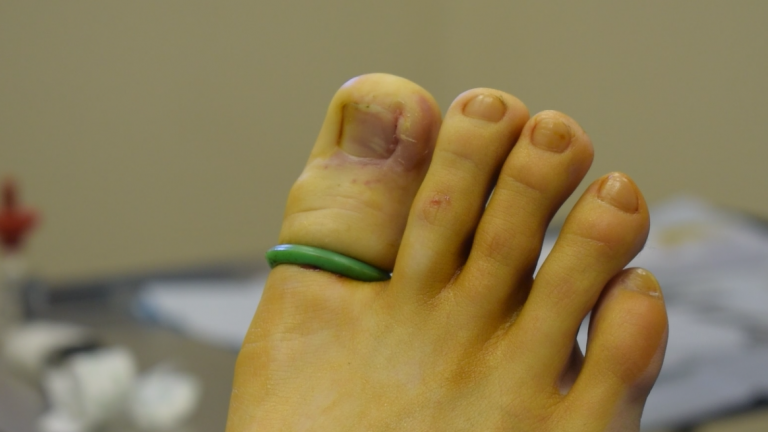 If your ingrowing toenail presents with hypergranulation tissue, this is surgically removed prior to performing the nail section.