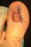 Patients are seen for their first redressing appointment the day after their procedure, advised how to redress their toe(s) daily with sterile dressings that we provide. Should patients encounter any post-operative issues, we operate a 24 hour Podiatry on-call Service.